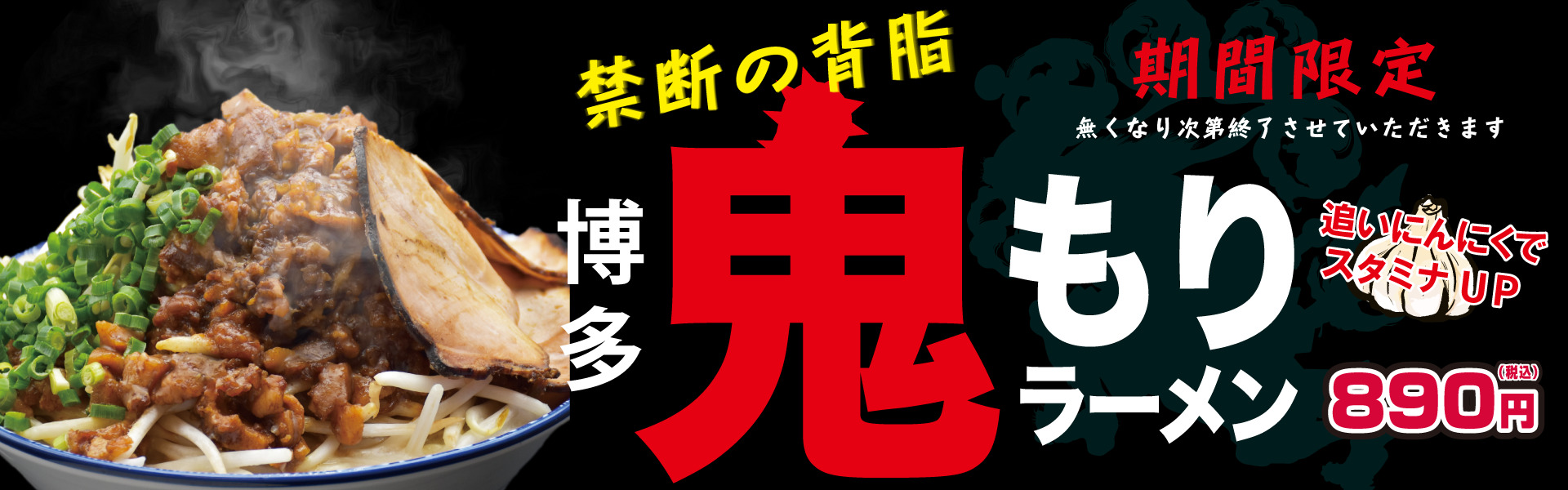 期間限定ラーメンのご案内! 2022年2月から「博多鬼もりラーメン」発売 1年の中で一番寒くなる季節にスタミナをつけて乗り越えよう! 鶴亀堂自慢のアツアツの「芳醇とんこつスープ」の上にドーンとたっぷりのもやしと、 禁断の背脂をたっぷりとトッ…
